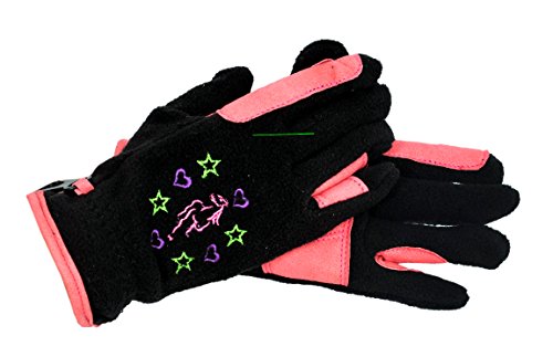 Riders Trend Girl's Riding Fleece Gloves - Black/Pink, Child Medium