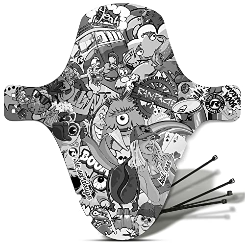Riesel Design ® Garde Boue : modèle Schlamm - PE- livré avec Colliers Rilsan/pour Toutes Les Tailles de vélo, pneus Jusqu’à 2.6’’ - Made in Germany – Stickerbomb eyecatcher Ultra Black, Taille Unique
