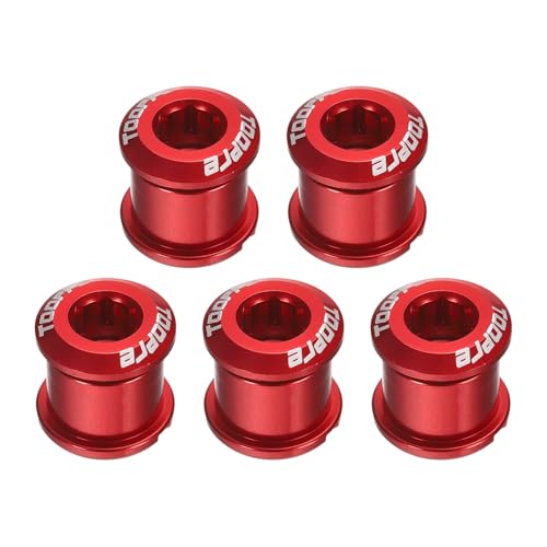 QUARKZMAN 5pcs Double Chain Ring Bolts M8 en Alliage D'Aluminium Écrous De Pédalier De Vélo Vis De Plateau pour Road Bike Mountain Bike, Rouge