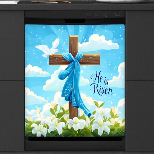 Mexpekil Aimant de lave-vaisselle sur le thème de Pâques « He Is Risen » - 53,3 x 66 cm - Autocollant décoratif étanche pour lave-vaisselle - Pour appareils de cuisine