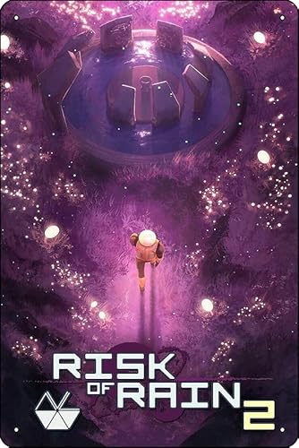 Panneau en métal avec inscription « Risk of Rain 2 » - 20,3 x 30,5 cm - Décoration murale amusante pour salle de jeux et grotte