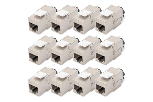 DIGITUS Keystone Module Cat-6A Blindé - 12 pièces - RJ45 Femelle - 500 MHz 10GBase-T - AWG 26-22 - Design Possible - avec Levier d'arrêt - Montage sans Outils