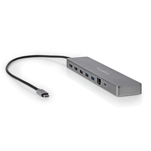 Nedis Adaptateur Multi-Ports USB - USB 3.2 Gen 1 - Connecteur USB-C™ - Micro SD / RJ45 Femelle/SD / 2 x HDMI™ / 2 x USB-C™ / 3 x USB-A Femelle - 0,40 m - Rond - Plaqué Or - TPE - Anthracite - Boîte