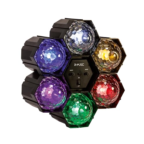 R-MUSIC – ATRO L – Boule Disco – Rotation 180° – Lumière de scène avec projection aléatoire de sphères et anneaux RGB – Effet de lumière LED RGB – Accrochage mural par vis – Pour Fête, DJ, Bar, Club