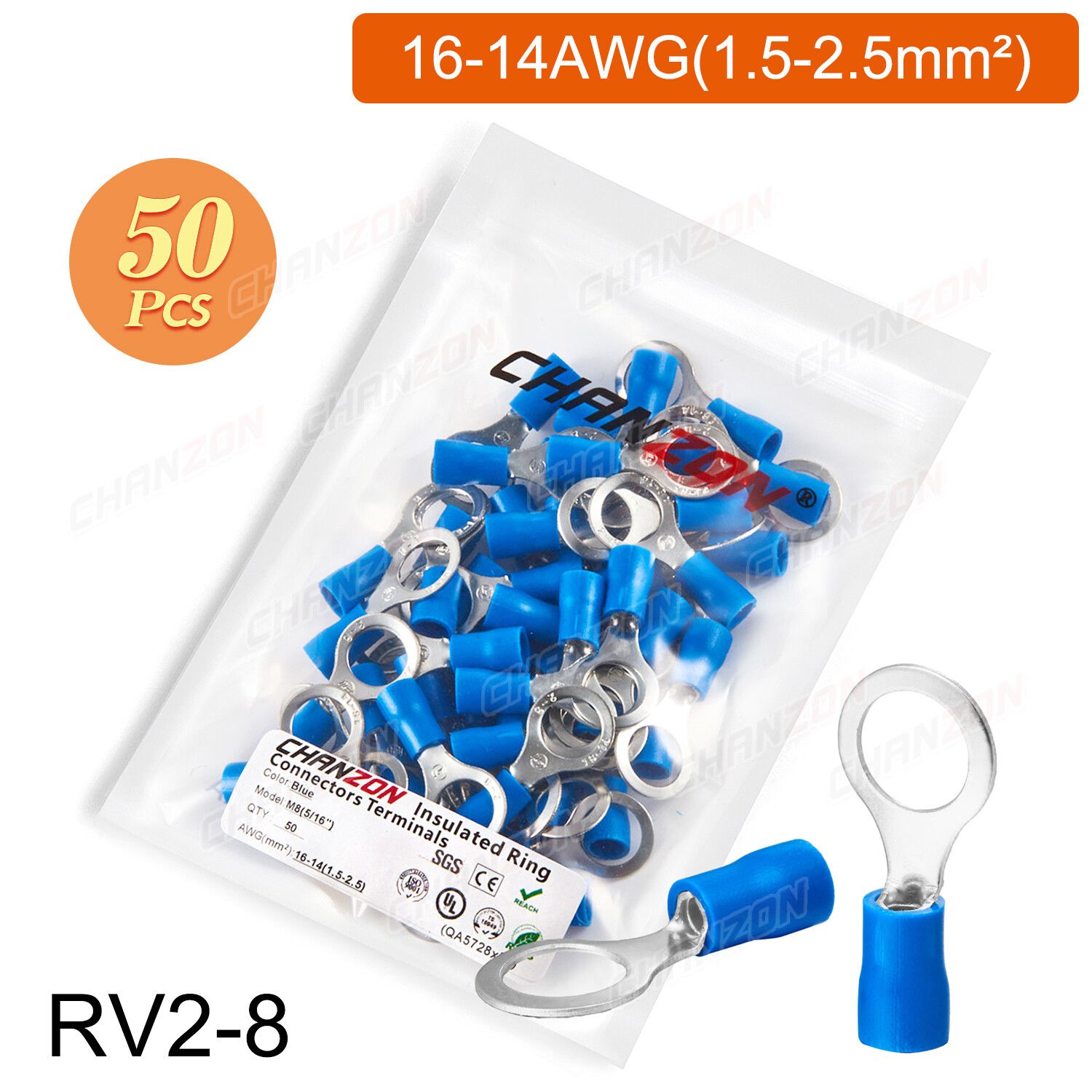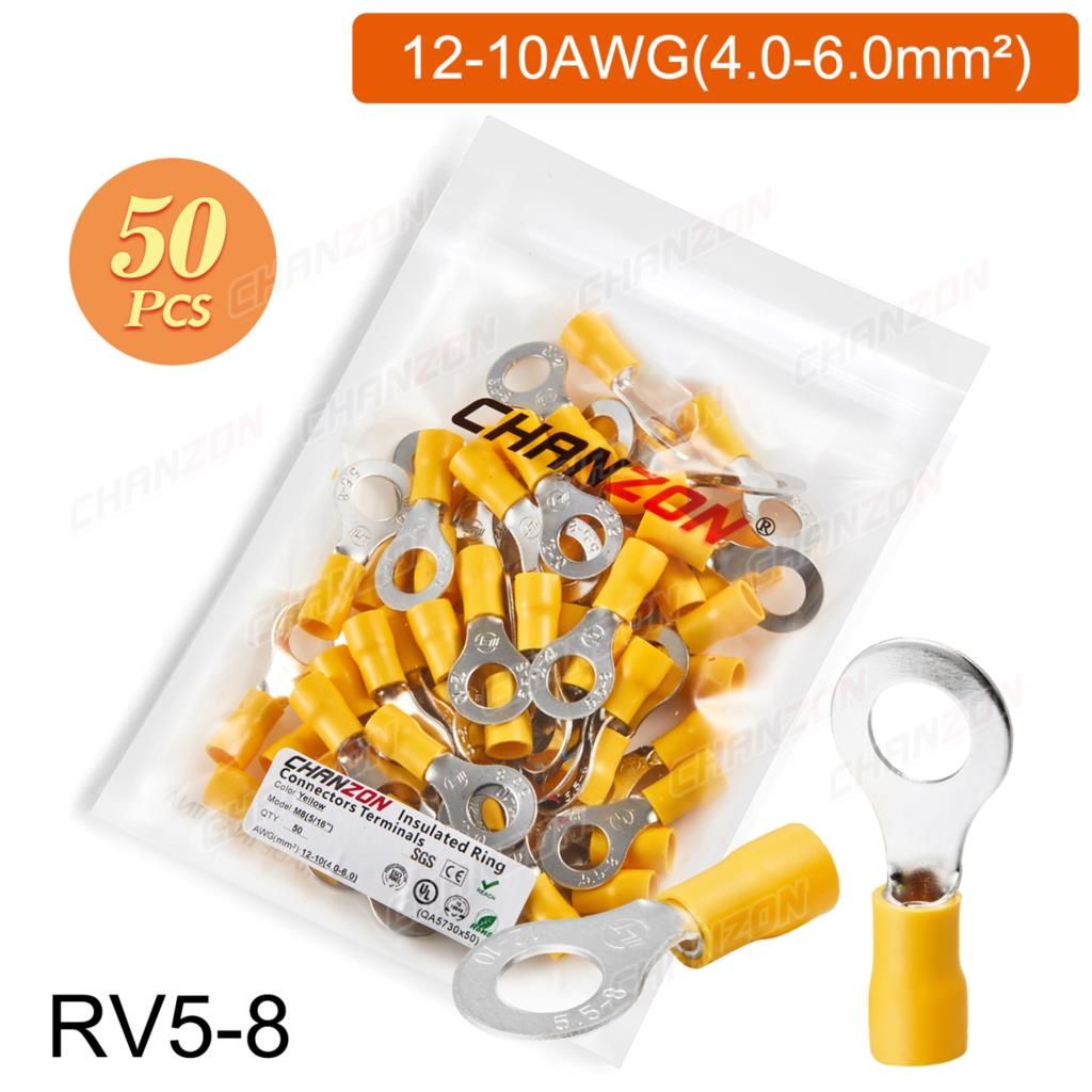 Outil de sertissage d'anneau électrique,connecteurs de fil de sertissage,câblage isolé politiquement,rouge,bleu,jaune,Rmusic25,Rv2,Rv5,22-10AWG,50 pièces,100 pièces - Type 50PCS RV5-8