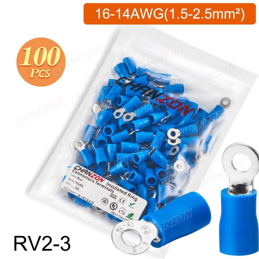 Outil de sertissage d'anneau électrique,connecteurs de fil de sertissage,câblage isolé politiquement,rouge,bleu,jaune,Rmusic25,Rv2,Rv5,22-10AWG,50 pièces,100 pièces - Type 100PCS RV2-3