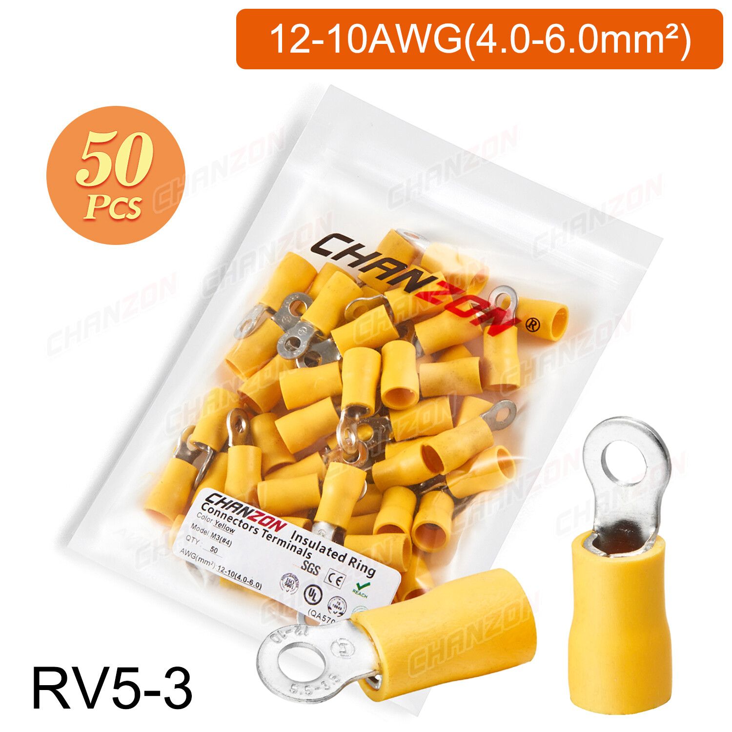 Outil de sertissage d'anneau électrique,connecteurs de fil de sertissage,câblage isolé politiquement,rouge,bleu,jaune,Rmusic25,Rv2,Rv5,22-10AWG,50 pièces,100 pièces - Type 50PCS RV5-3