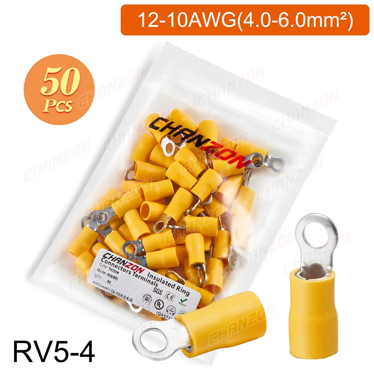 Outil de sertissage d'anneau électrique,connecteurs de fil de sertissage,câblage isolé politiquement,rouge,bleu,jaune,Rmusic25,Rv2,Rv5,22-10AWG,50 pièces,100 pièces - Type 50PCS RV5-4