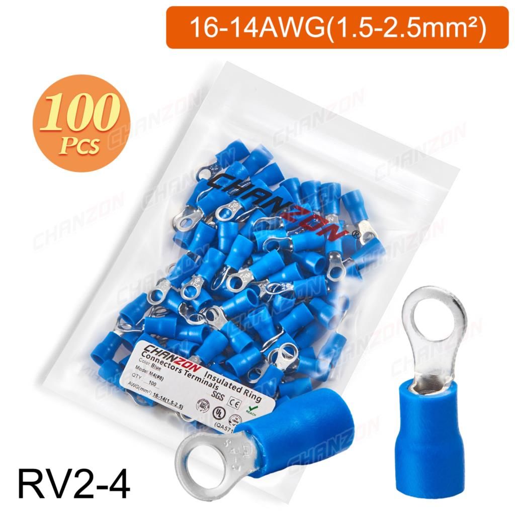 Outil de sertissage d'anneau électrique,connecteurs de fil de sertissage,câblage isolé politiquement,rouge,bleu,jaune,Rmusic25,Rv2,Rv5,22-10AWG,50 pièces,100 pièces - Type 100PCS RV2-4