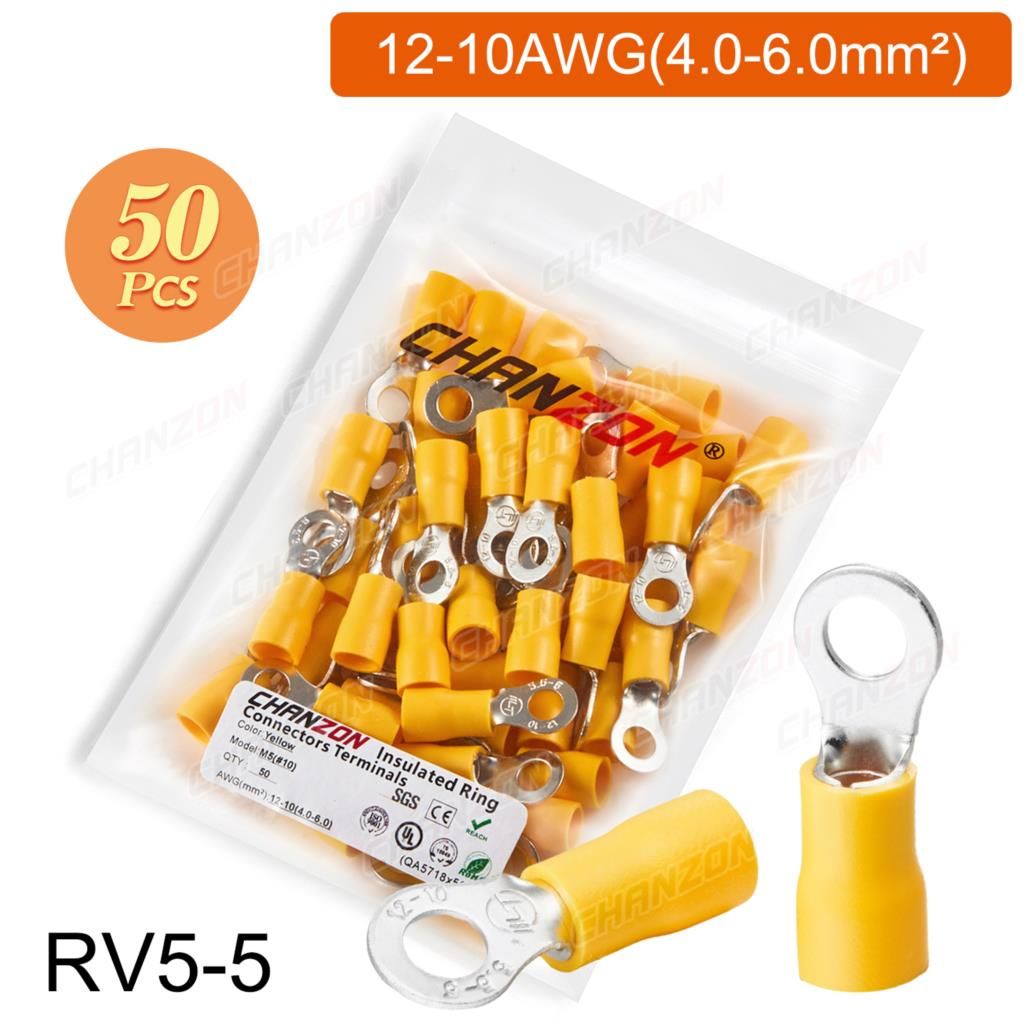 Outil de sertissage d'anneau électrique,connecteurs de fil de sertissage,câblage isolé politiquement,rouge,bleu,jaune,Rmusic25,Rv2,Rv5,22-10AWG,50 pièces,100 pièces - Type 50PCS RV5-5