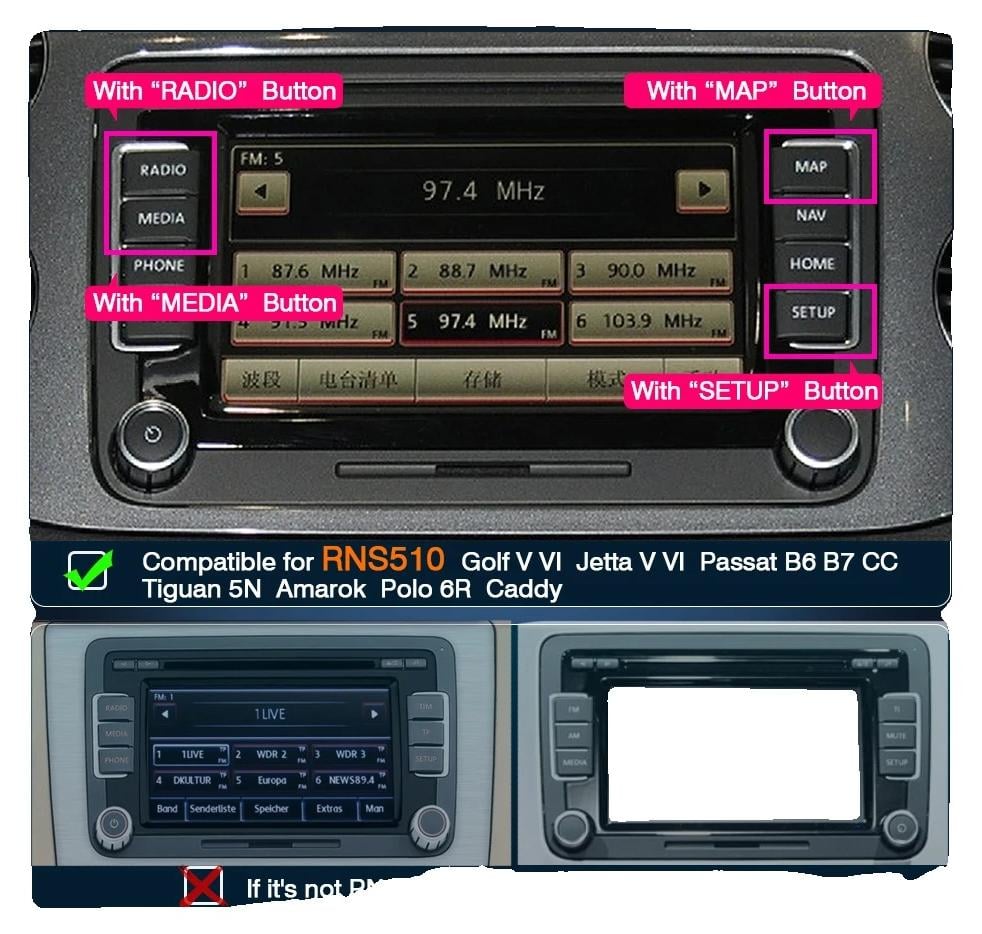 CarPlay et Android Auto sans fil, prise en charge des caméras, commandes intuitives, pour VW RNS 510