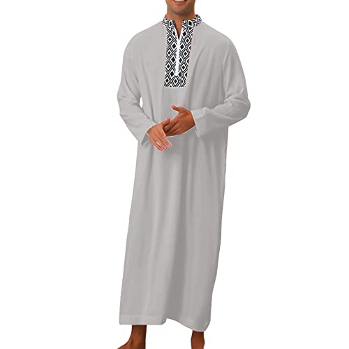 Voiakiu Qamis Arabe Manches Longues Homme,vêtements islamiques pour Hommes - Robe à Manches Longues Robe Arabe Vêtements islamiques du Moyen-Orient
