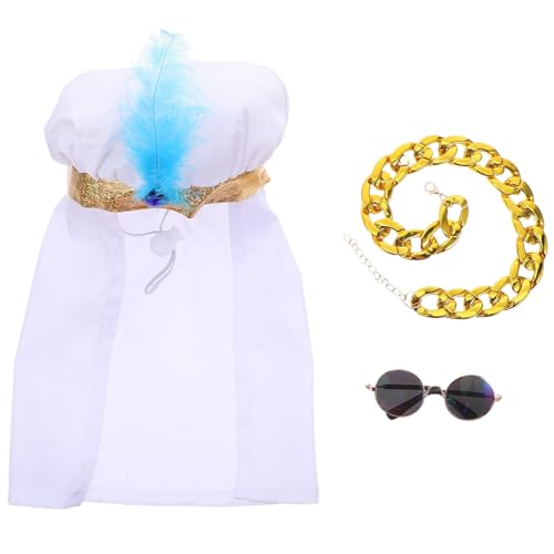 Yardwe Déguisement Halloween pour Chien Et Chat avec Lunettes Soleil Collier Chaîne Bandana Et Couvre-Chef Arabe Robe Fête pour Animaux De Compagnie