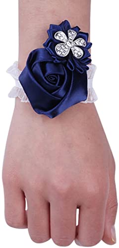 HLTYGWX Corsage de Poignet boutonnière de Mariage mariée Demoiselle d'honneur Poignet Fleur Bracelet élastique Bracelet pour Femme Accessoires de Robe de soirée (Couleur: Bleu Marine) (Taille Bleu