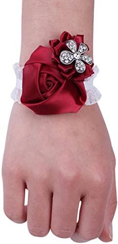 HLTYGWX Corsage de Poignet boutonnière de Mariage mariée Demoiselle d'honneur Poignet Fleur Bracelet élastique Bracelet pour Femme Accessoires de Robe de soirée (Couleur: Bleu Marine) (Taille Rose