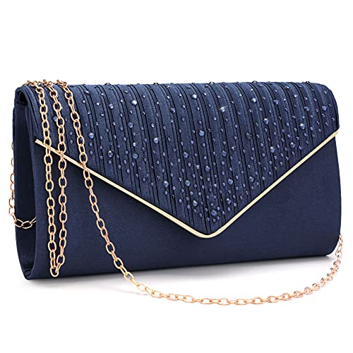 Milisente Pochette pour femme, pochette Suedu pour mariage, bandoulière, sac de soirée, bleu marine, L, Sacs à bandoulière