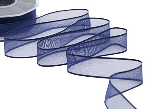 Furlanis - Ruban Voile avec Bords, Ruban Décoratif pour Les Cadeaux, Emballages, et Faveurs de Mariage, Tissu Italien - Bleu Marine, 10 mm x 50 m