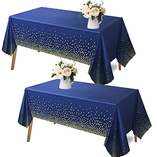 XIAMOOR Lot de 2 nappes en Plastique Bleu Marine à Motif confettis à Pois pour Tables rectangulaires, Convient pour Toutes Les fêtes d'anniversaire, Mariage, Remise de diplôme, Anniversaire de