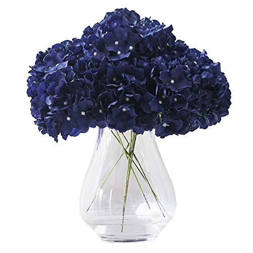Kislohum Lot de 10 Fleurs d'hortensia artificielles en Soie pour Bouquets de Mariage, centres de Table, décoration Florale avec tiges - Bleu Marine