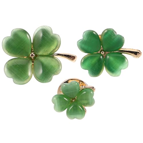 HANABASS Broche Feuille Trèfle Chanceuse, Épingle de Revers pour Vêtements, Métal Léger Vert, Lot de 3 Tailles, Accessoire Décoratif pour Cardigan, Robe, Chemise