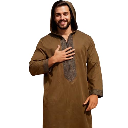 Chemise sans Repassage Homme - Robe de Chambre Marron décontractée pour Homme avec Manches Longues et Fermeture éclair décoratives pour Un Style printanier Confortable