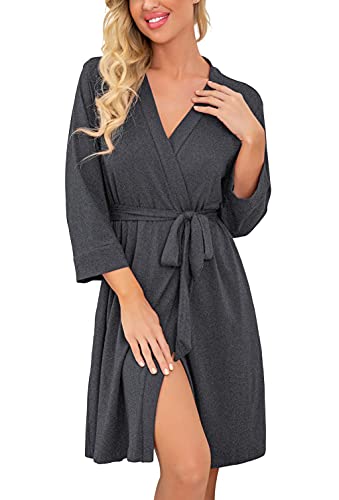 PrinStory Robe de bain longue/courte en tricot pour femme - Kimono doux - Peignoirs pour femmes - Robes de chambre décontractées pour dames, gris foncé, M