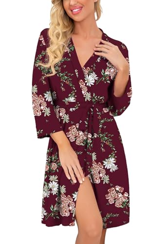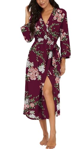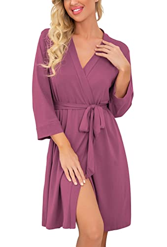 PrinStory Robe de bain longue/courte en tricot pour femme - Kimono doux - Peignoirs pour femmes - Robes de chambre décontractées pour dames, violet/rouge, M