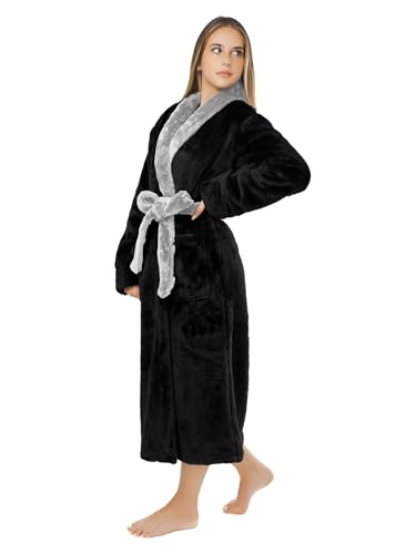 LEBENGOOD Robe de Chambre Femme Hiver, Peignoir Polaire, Sortie de Bain Chaude, OEKO-TEX®,Negra XL