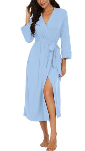 PrinStory Robe de bain longue/courte en tricot pour femme - Kimono doux - Peignoirs pour femmes - Robes de chambre décontractées pour dames, Mélange bleu., XXL