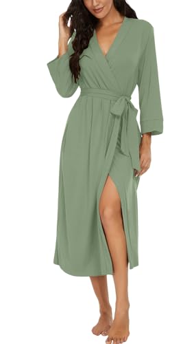 PrinStory Robe de bain longue/courte en tricot pour femme - Kimono doux - Peignoirs pour femmes - Robes de chambre décontractées pour dames, vert olive, M