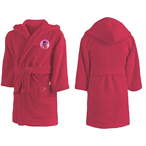 MIRACULOUS LADYBUG Peignoir de bain Brodé à Capuche 6 à 8 ans | Bouclette 100% COTON | OEKO-TEX | Robe de chambre Enfant Fille | Rouge