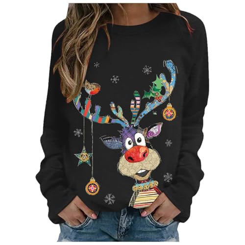 Bastwahl Robe De Noel Femme,Femmes Automne Hiver décontracté Noël Renne Bonhomme de Neige Cloches imprimé Mignon Manches Longues col Rond Pull Confortable Fille