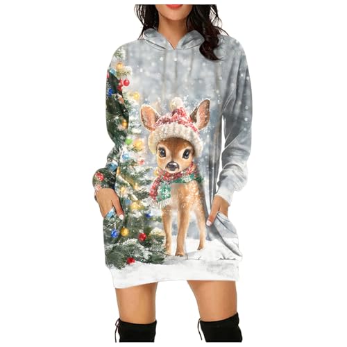 Robe Sweat Femme Noel - Robe Pull Noel Femme Sweat à Capuche Avec Poche Manches Longues Robe De Noel ÉléGant Chic Moche Hoodies Automne Et Hiver Chaude Robe Sweat avec Motif Imprimé Robe De Noel