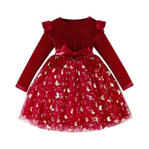 Générique Robe De Noel Enfant,Robe De NoëL en pour Petites Filles VêTements De NoëL à Manches Longues avec NœUd Papillon Et éToiles ImpriméEs (Red 2-3 Years)
