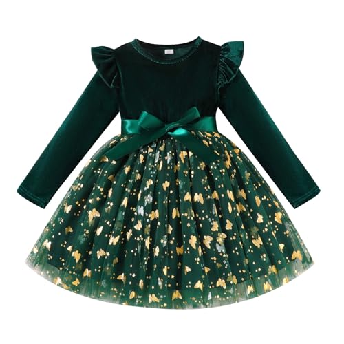 Générique Robe De Noel Enfant - Robe en Velours à imprimé étoiles pour Fille avec Ourlet à Volants et Ceinture à nœud Papillon élégante Robe de soirée à Manches Longues pour Les fêtes (7-8 Years)