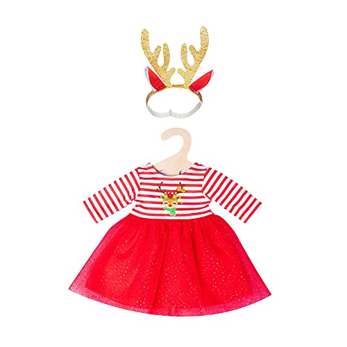 Heless 1151 - Robe de Noël pour poupée - Motif Renne Rudi - avec Serre-tête et Bois d'or - Taille 28-35 cm