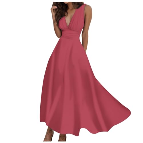 Bastwahl Robe Mariage invitée Femme,Robe Femme Chic Et Élégante Sexy Col en V Manches Courtes Longue Bohème Classique Couleur Unie Vintage De Cocktail pour Dames
