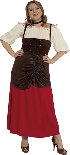 FIESTAS GUIRCA | Disfraz de Tabernera Medieval (38-40/M) - Robe pour Femme - Costumes d'Époque, Renaissance et Foires Médiévales pour Halloween, Carnaval et Fêtes Déguisées - Marron et Rouge