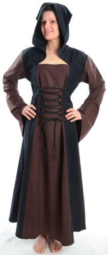 HEMAD - Robe médiévale pour Femme - Capuche, laçage du Devant et du Dos, Coton – L Brun & Noir