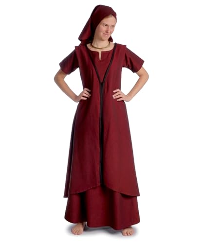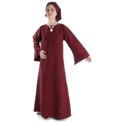 HEMAD Robe médiévale pour femme, taille S à XL, en pur coton, structure en lin, sous-robe pour femme, manches trompette, rouge, L