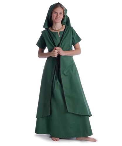 HEMAD sur-Robe médiévale pour Femme - Longue et Ouverte - 100% Coton - Vert