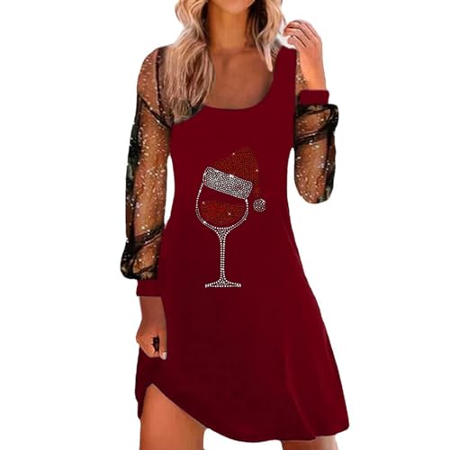 Générique Robe Noel Femme Soiree, Robe Fete Femme Chic Décontractée Manches Longues Robe De Cocktail Robe Tendance Imprimé Col en V Classique Swing Robe Robe Elegant Robe