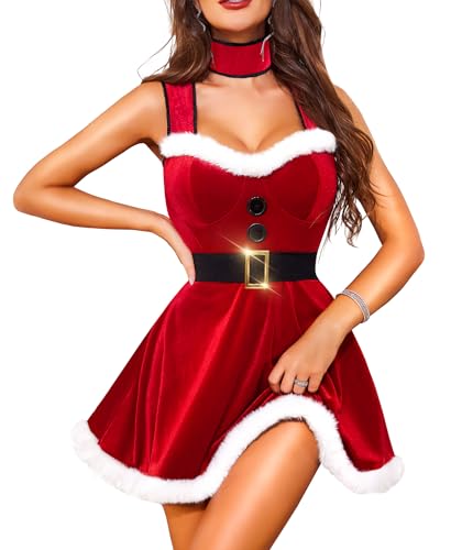 RSLOVE Nuisette Femme de Noël - Lingerie Sexy Santa Robe Noel Femme Costume Mere Noel Chemise de Nuit Rouge S