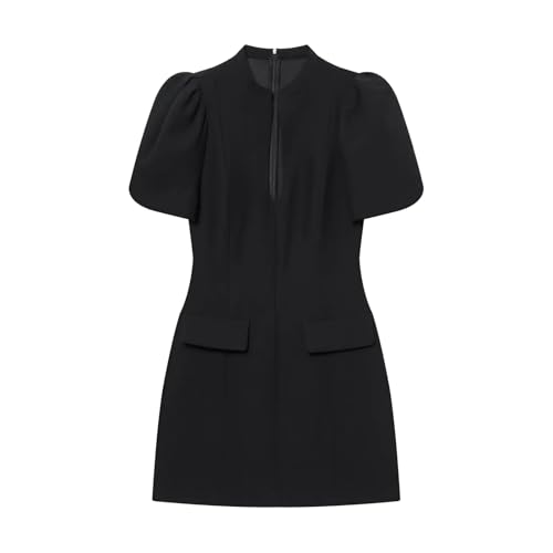 CHENWEIHAI Robe Femme Robe De Soiree Dress Robe Courte À Manches À Manches en O Fermeture Éclair Arrière Robe Sexy Noire Mini Robe Élégante Féminine (M/Noir)