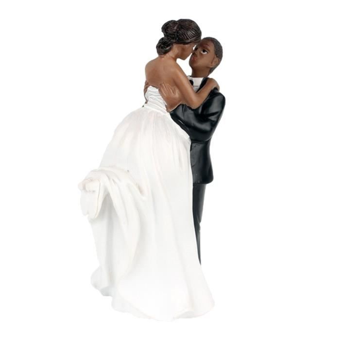 Topper Gâteau Noirs Couple de Mariés en Robe Blanche et Robe de Soirée Noir Figurines Pièce Montée Mariage - 14cm