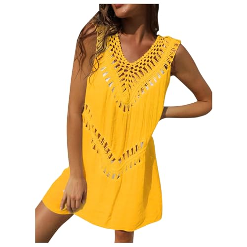 Générique Robe De Plage Femme Ete,Cache Maillot De Bain Femme Plage Sexy sans Manches Robe Courte Boheme en Crochet Maille Col en V Maillot De Bain Cover Up Bikini Pareo