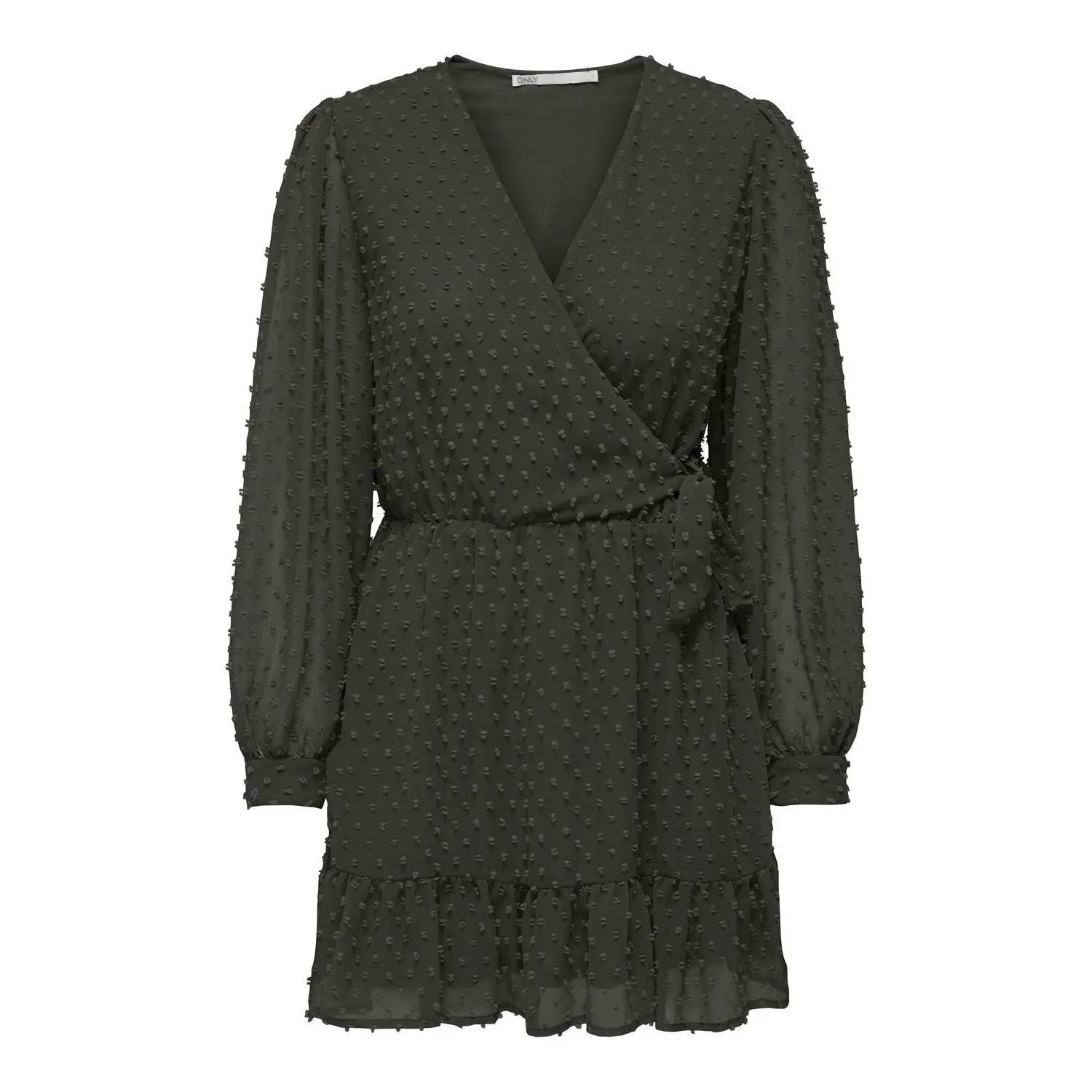 Only Tiva Dobby Fake Wrap Long Sleeve Short Dress (Femme)