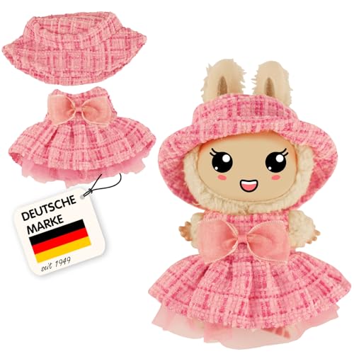 Heless Monster Styles 7514 - Robe de poupée en Bouclette avec Chapeau de pêcheur en Rose, avec Motif à Carreaux et nœud, Set Kawaii pour Monstres de Taille 15 cm
