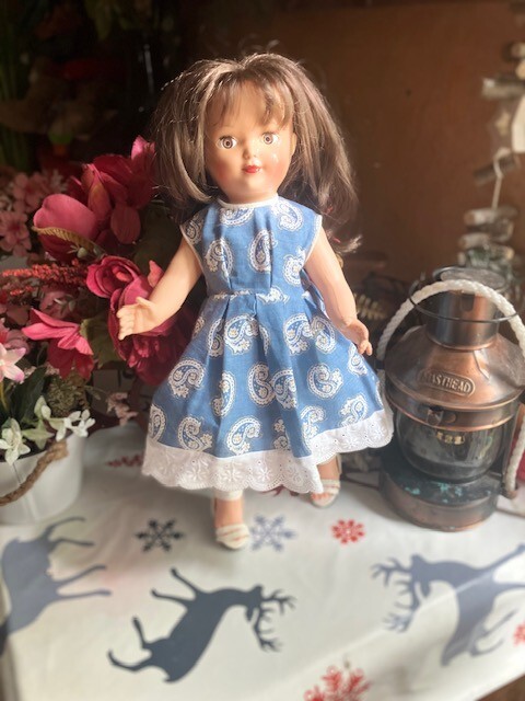 robe neuve poupee mode et travaux marie francoise bleu avec le foulard====