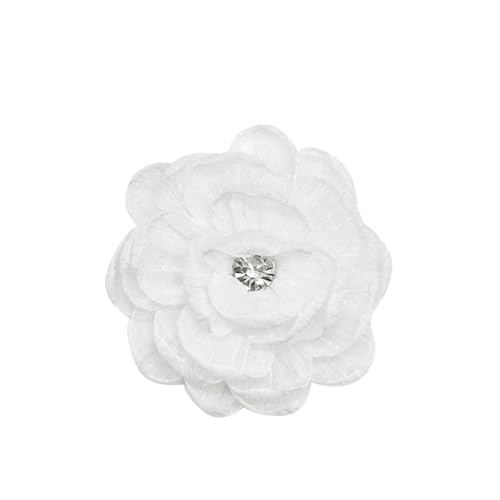 70mm Broche Fleur Camélia En Tissu Épingle à Col Strass Façon Main Accessoire Polyvalent Pour Cheveux Robe Mariage Cadeau Fête DIY Style Bohème Chic Bijoux (Blanc)